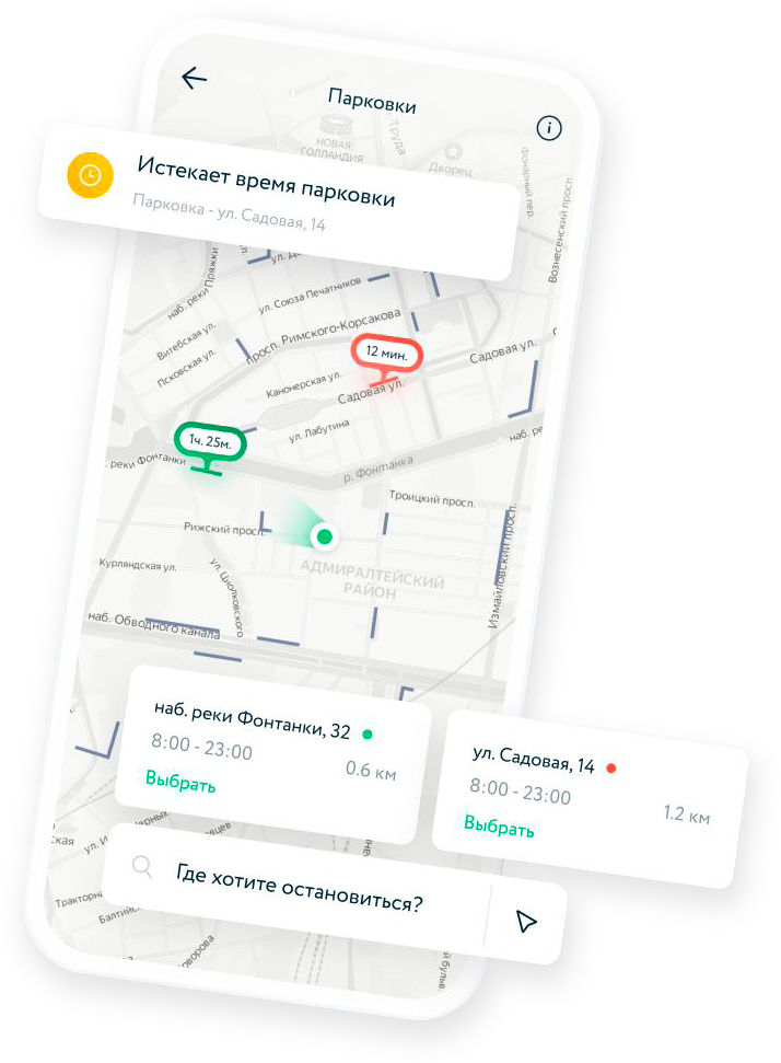 В приложении отображаются все парковки, подключенные к сервису БСТР. Также информация доступна на сайте.